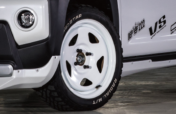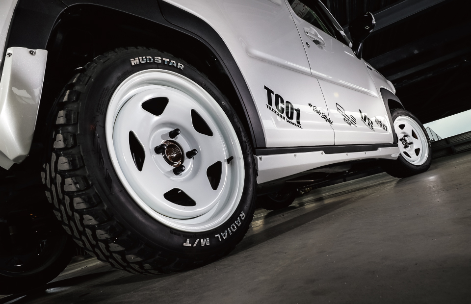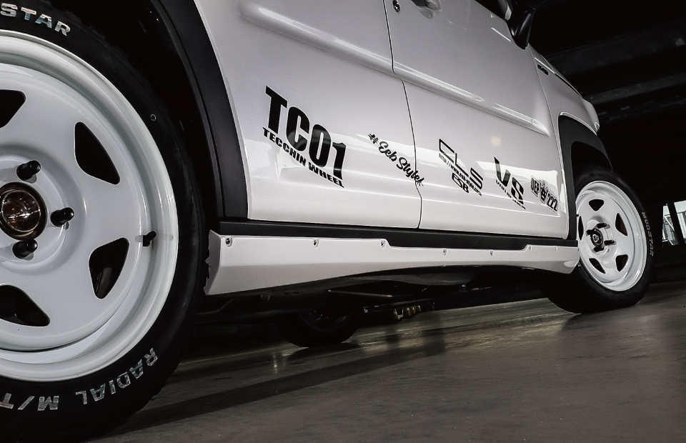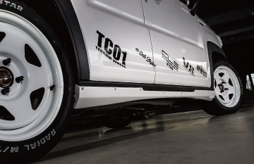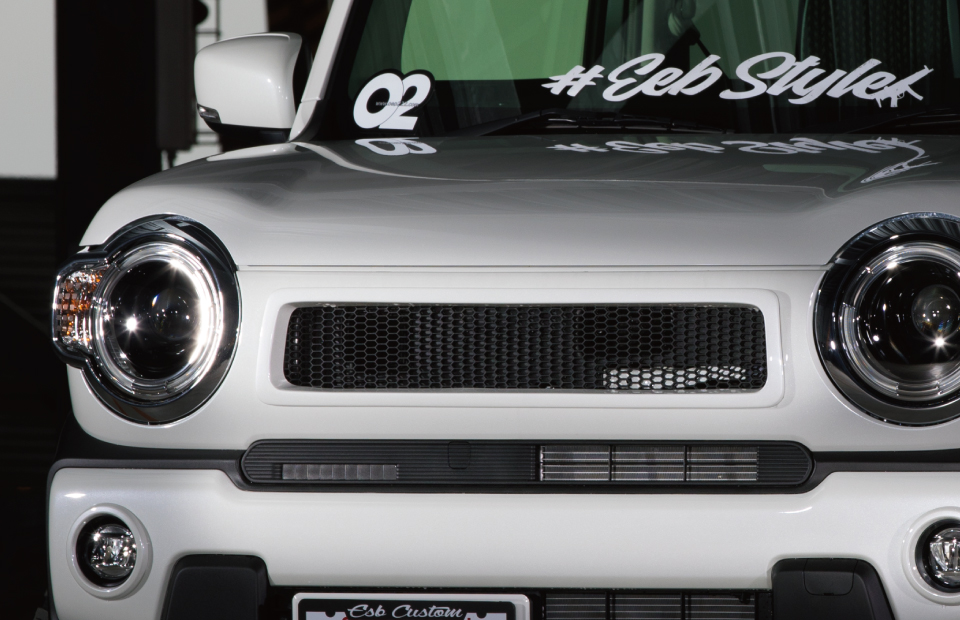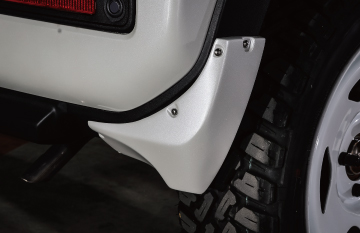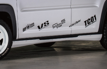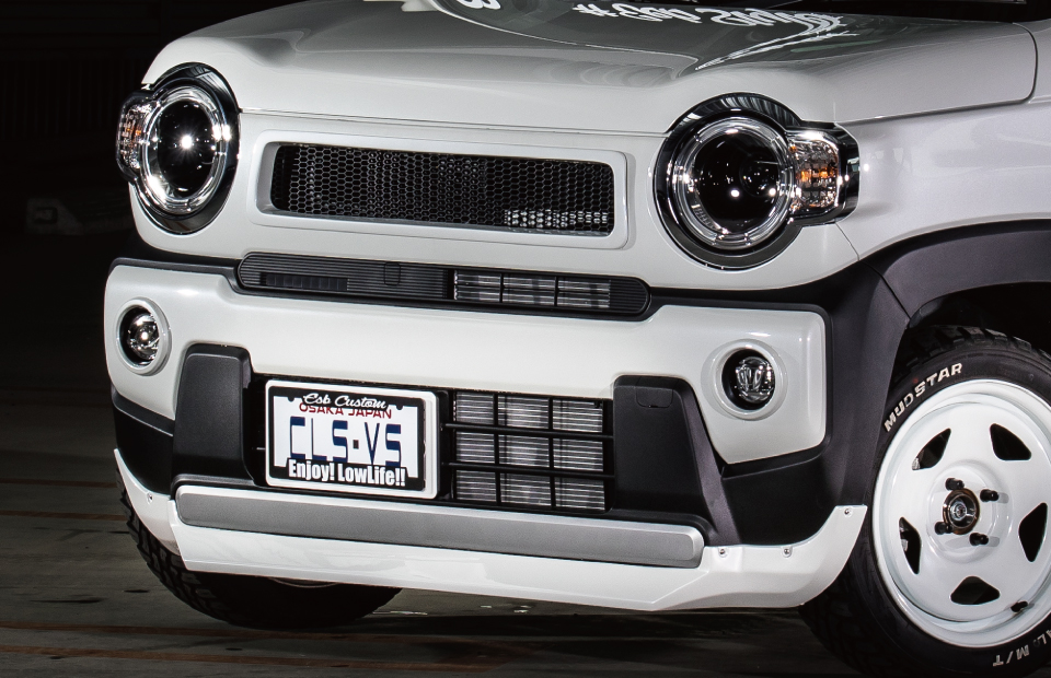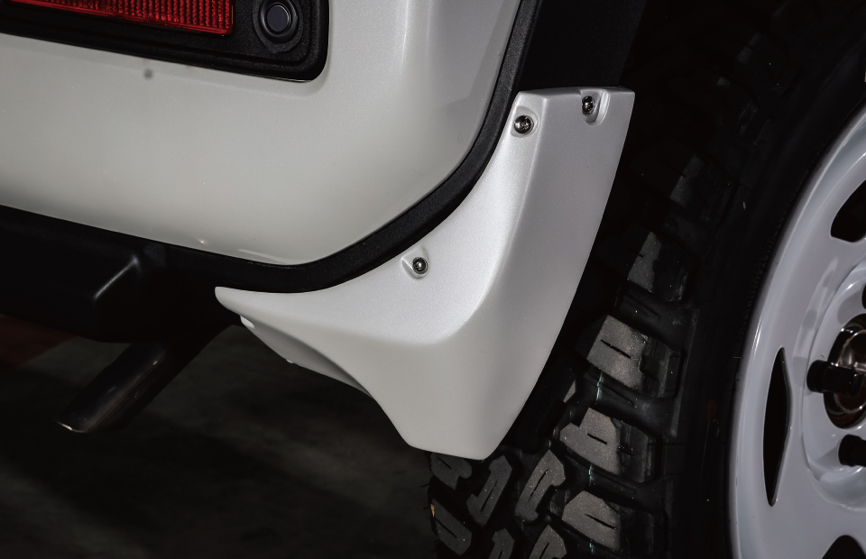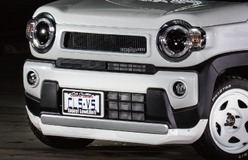 ローダウン、リフトアップどちらのスタイルにもマッチするフロントスポイラーデザイン。取付けはバンパーにビス止めになります。