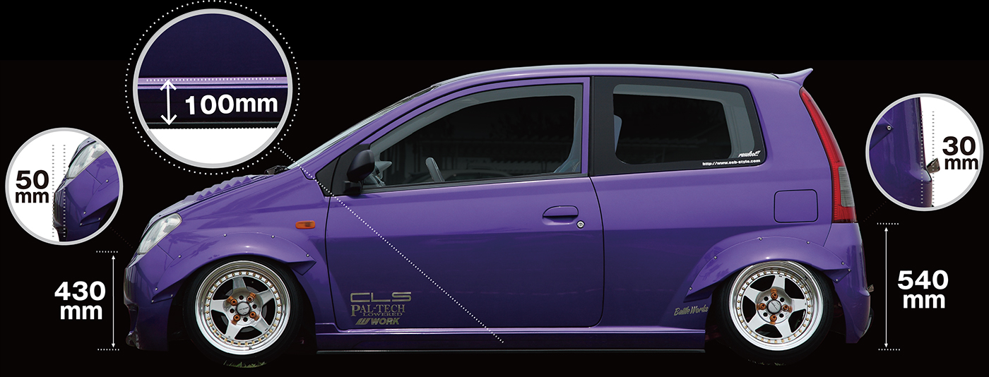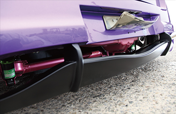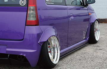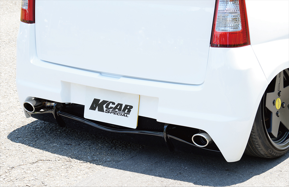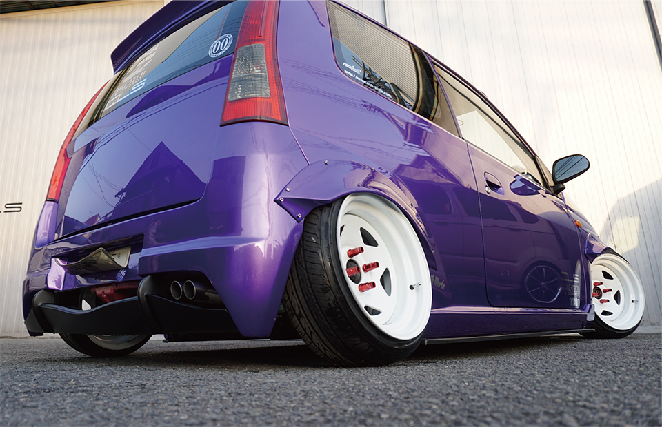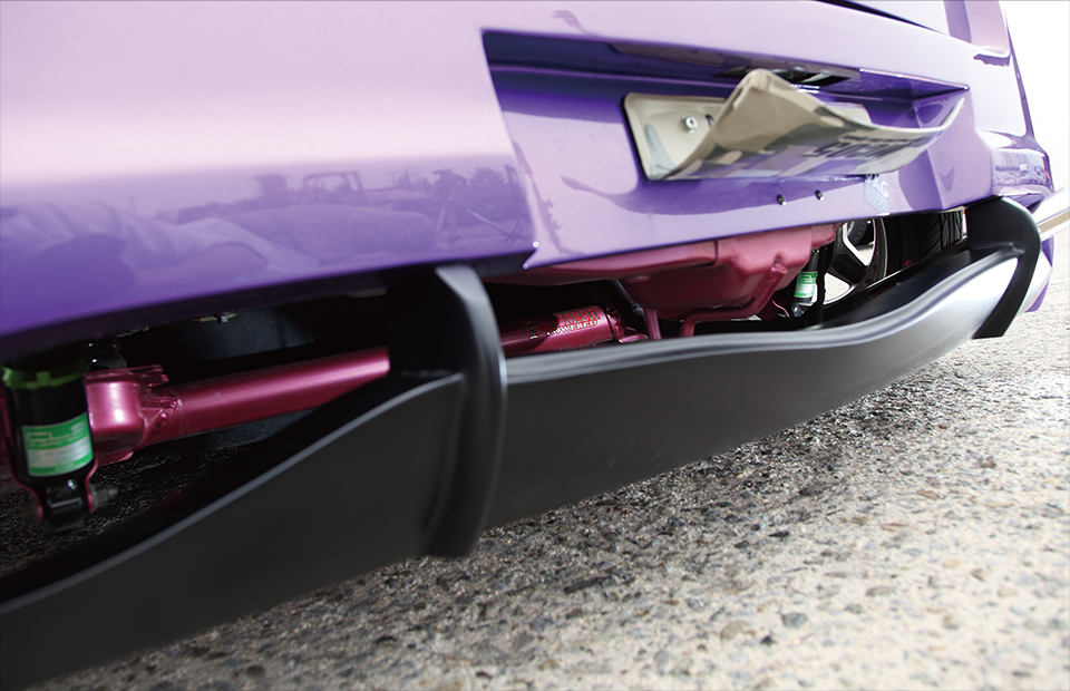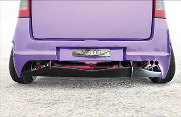 開口部からは車高調やアクスルを後続車へ充分にアピールできる