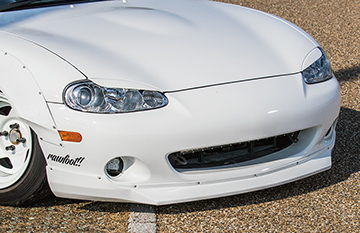 古き良き時代のチンスポをオマージュし現代風にアレンジ。低車高での走行を想定したサイズで適度なロードクリアランス。