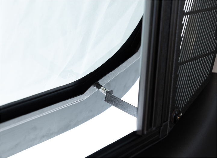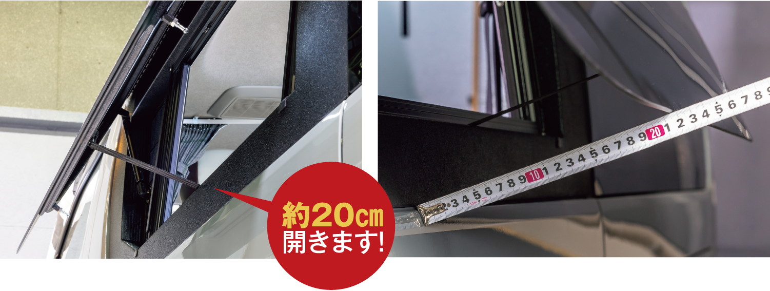 ウインドウの開閉は通常固定バンドで約20㎝開きます。