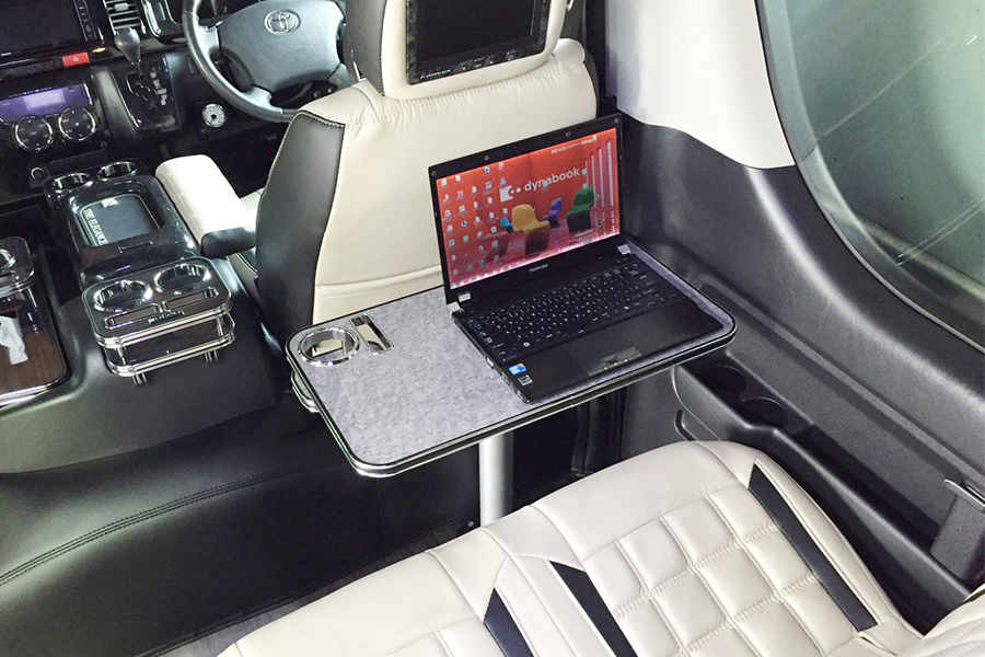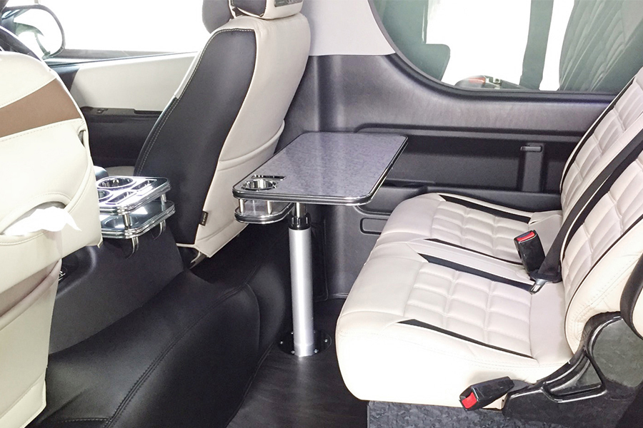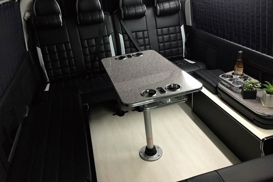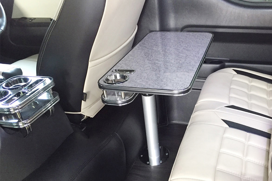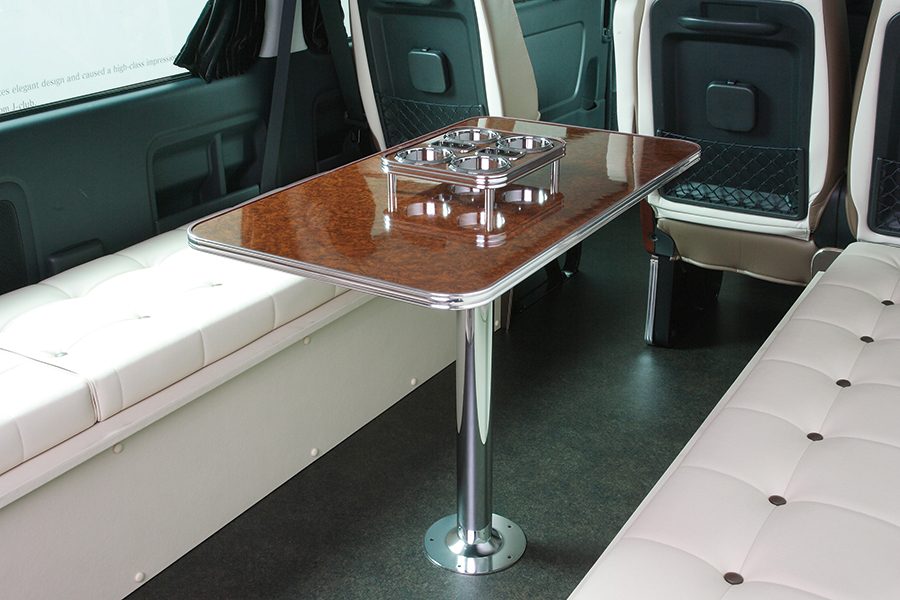 より洗練された丸型のデザインテーブル。ドリンクホルダーも4つ完備し、従来の使い勝手を損なう事なくブラッシュアップされたデザインです。
