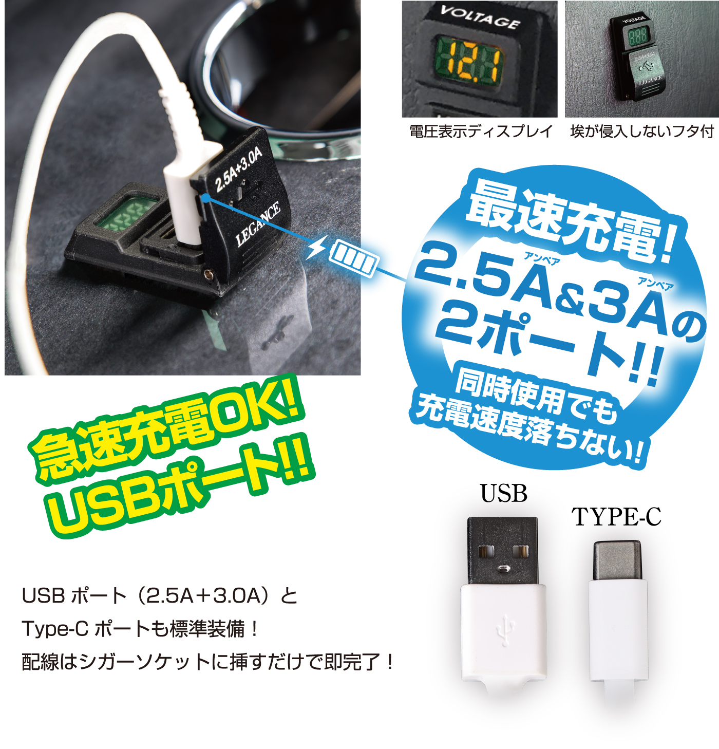 同じくUSBポート付きで、セカンドシートのお困りごとを解決します!