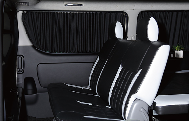 見た目のスタイルにも拘ったドレスアップリアカーテンセット。